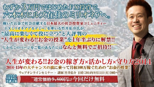 ⇒無料オンラインウェブセミナー「人生が変わるお金の授業」
